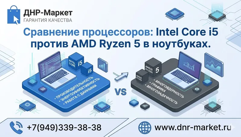 —Сравнение процессоров: Intel Core i5 против AMD Ryzen 5 в ноутбуках.