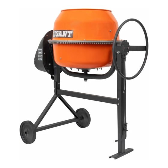 Бетоносмеситель Gigant БС-120 представляет собой надежное и эффективное устройство для приготовления строительных растворов. Оснащенный электрическим двигателем мощностью 600 Вт, он работает от стандартной сети напряжением 220 В, что делает его удобным для использования в бытовых условиях. Барабан объемом 120 литров позволяет приготовить до 46 литров готового раствора за один цикл. Скорость вращения барабана составляет 26 об/мин, что обеспечивает равномерное перемешивание компонентов. Чугунный венец и венечный тип привода гарантируют долговечность и устойчивость конструкции. Гравитационный принцип действия и механизм опрокидывания с штурвалом упрощают процесс выгрузки раствора.