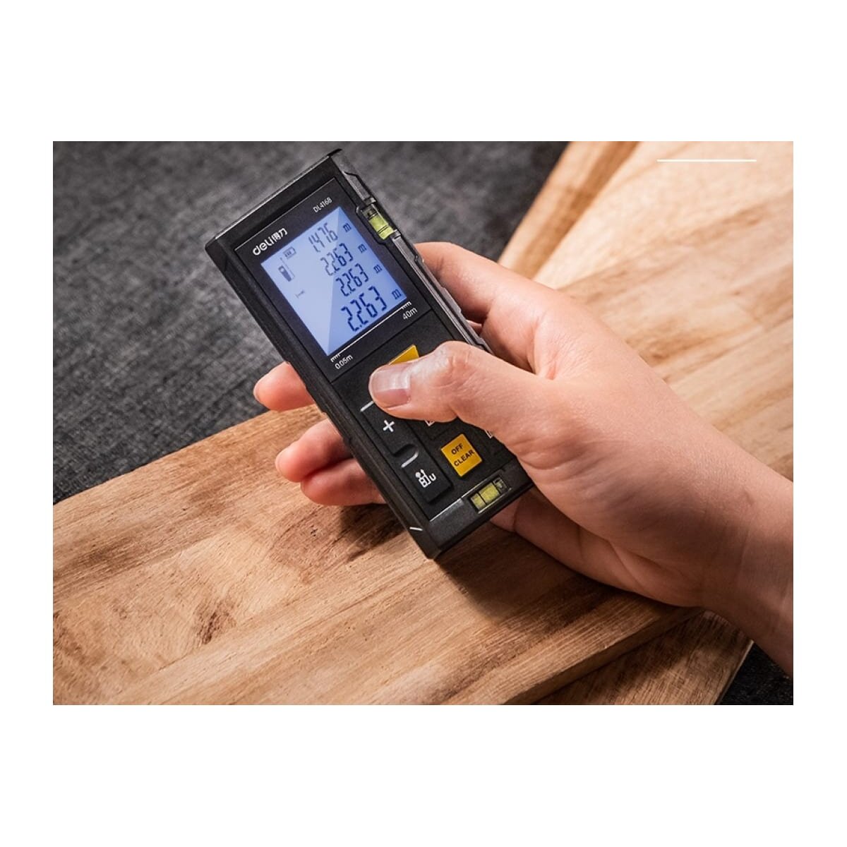 Дальномер оснащен лазером, который позволяет измерять расстояния на удалении до 40 метров с трехмиллиметровой точностью