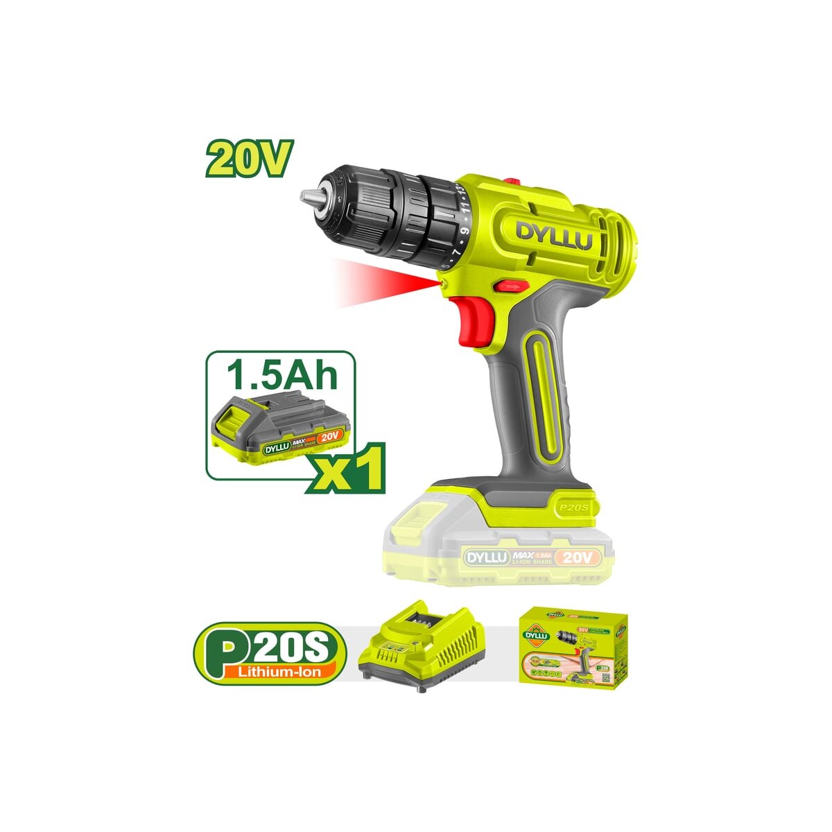 Аккумуляторная дрель-шуруповерт DYLLU DTCDP511 работает от напряжения 20В и имеет двухскоростной режим работы: 0–400 об/мин и 0–1500 об/мин. Максимальный крутящий момент составляет 35Нм, что позволяет эффективно работать с различными материалами, такими как дерево, металл и пластик. Пластиковый патрон с диапазоном зажима 0.8–10 мм обеспечивает надежную фиксацию сверл и бит. Регулировка крутящего момента (15+1) позволяет точно контролировать усилие при заворачивании крепежей. Встроенная светодиодная подсветка помогает работать в условиях недостаточного освещения. В комплект входит аккумулятор емкостью 1.5Ач и зарядное устройство.