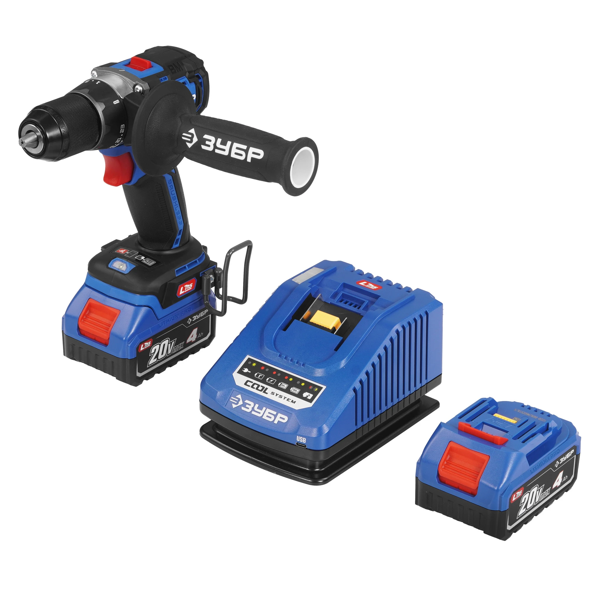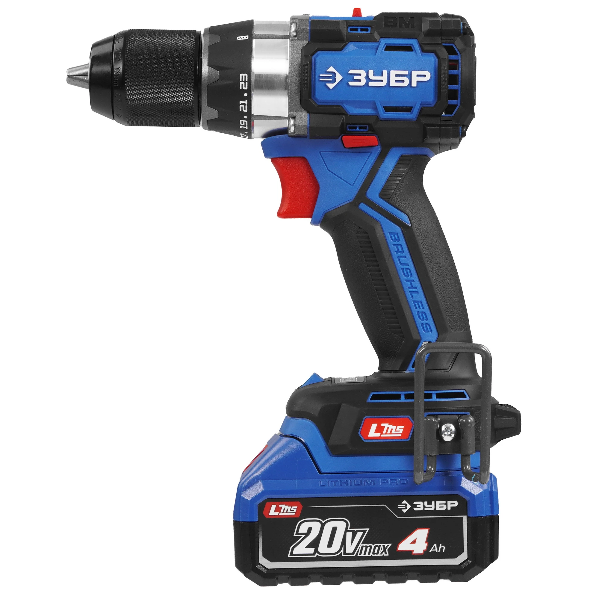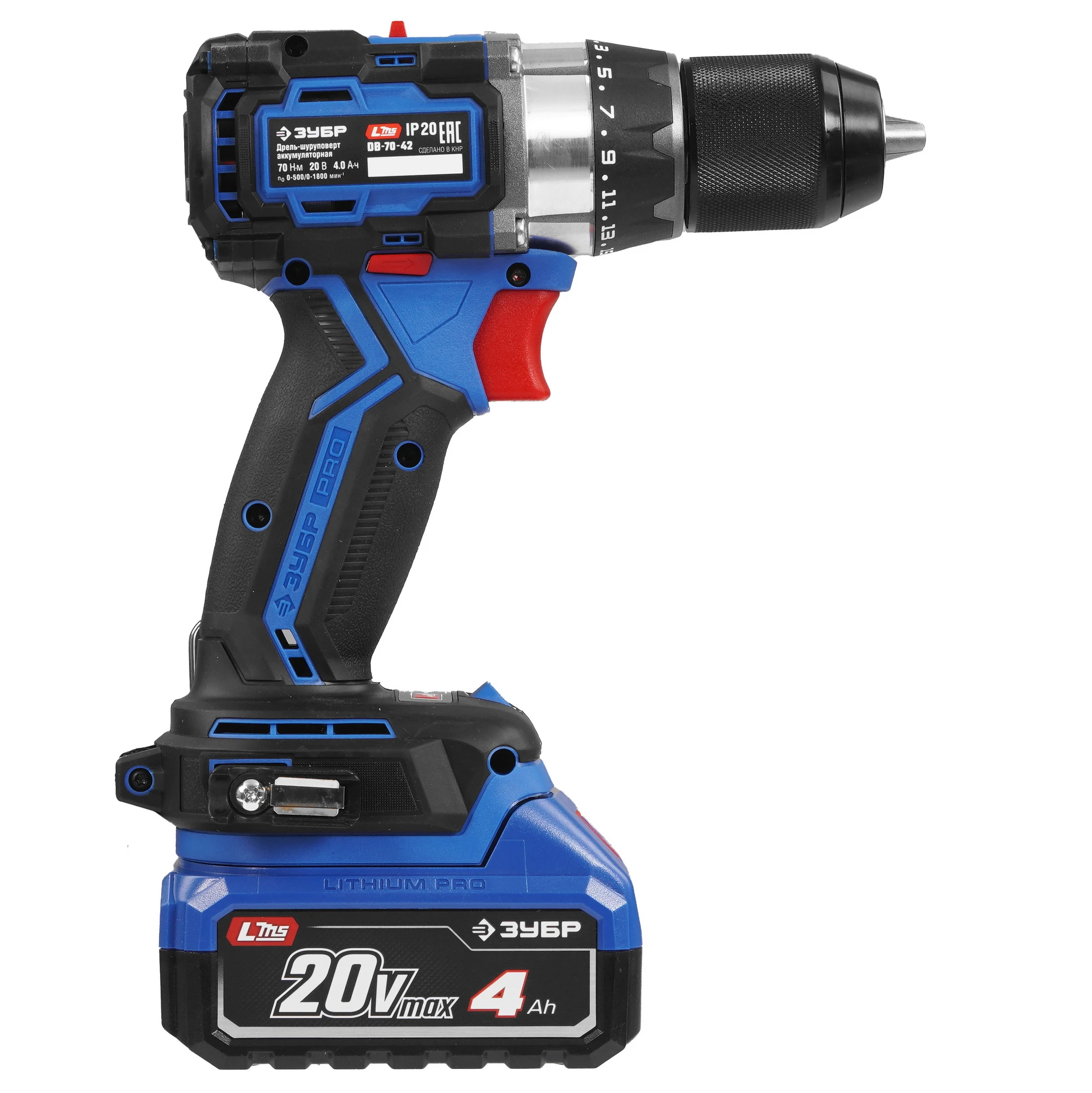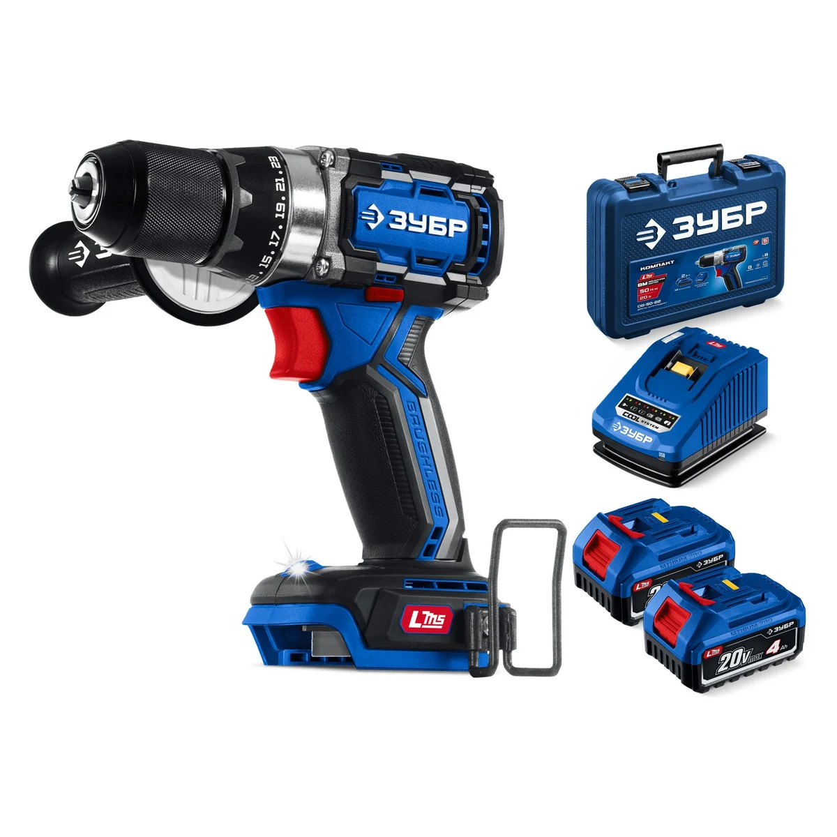 ЗУБР Профессионал 20 В, 70 Н·м, 2 АКБ LMS (4 А·ч), бесщеточная дрель-шуруповерт, кейс DB-70-42 - ЗУБР Профессионал 20 В, 70 Н·м, 2 АКБ LMS (2 А·ч), бесщеточная дрель-шуруповерт, кейс DB-70-22 - высокотехнологичная модель в новой линейке аккумуляторного инструмента ЗУБР серии LMS.