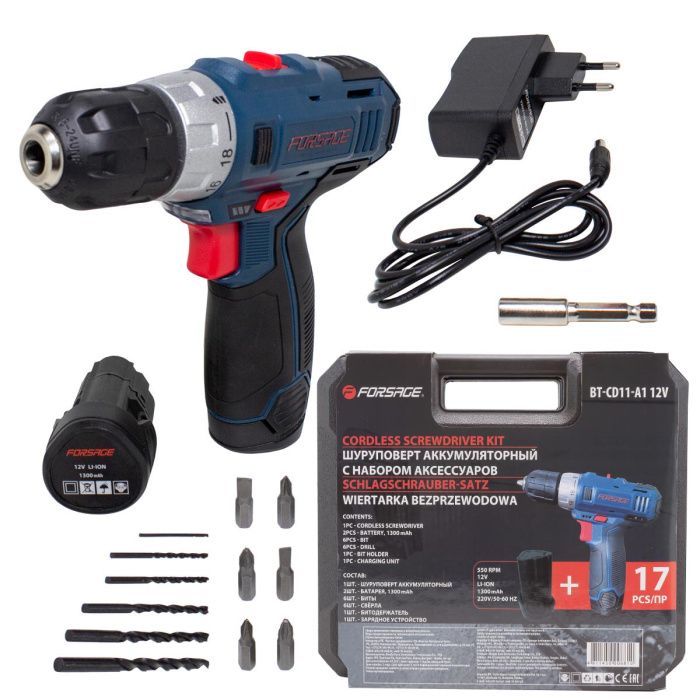 Аккумуляторная дрель-шуруповерт Forsage BT-CD11-A1 50517 подходит для решения бытовых задач.