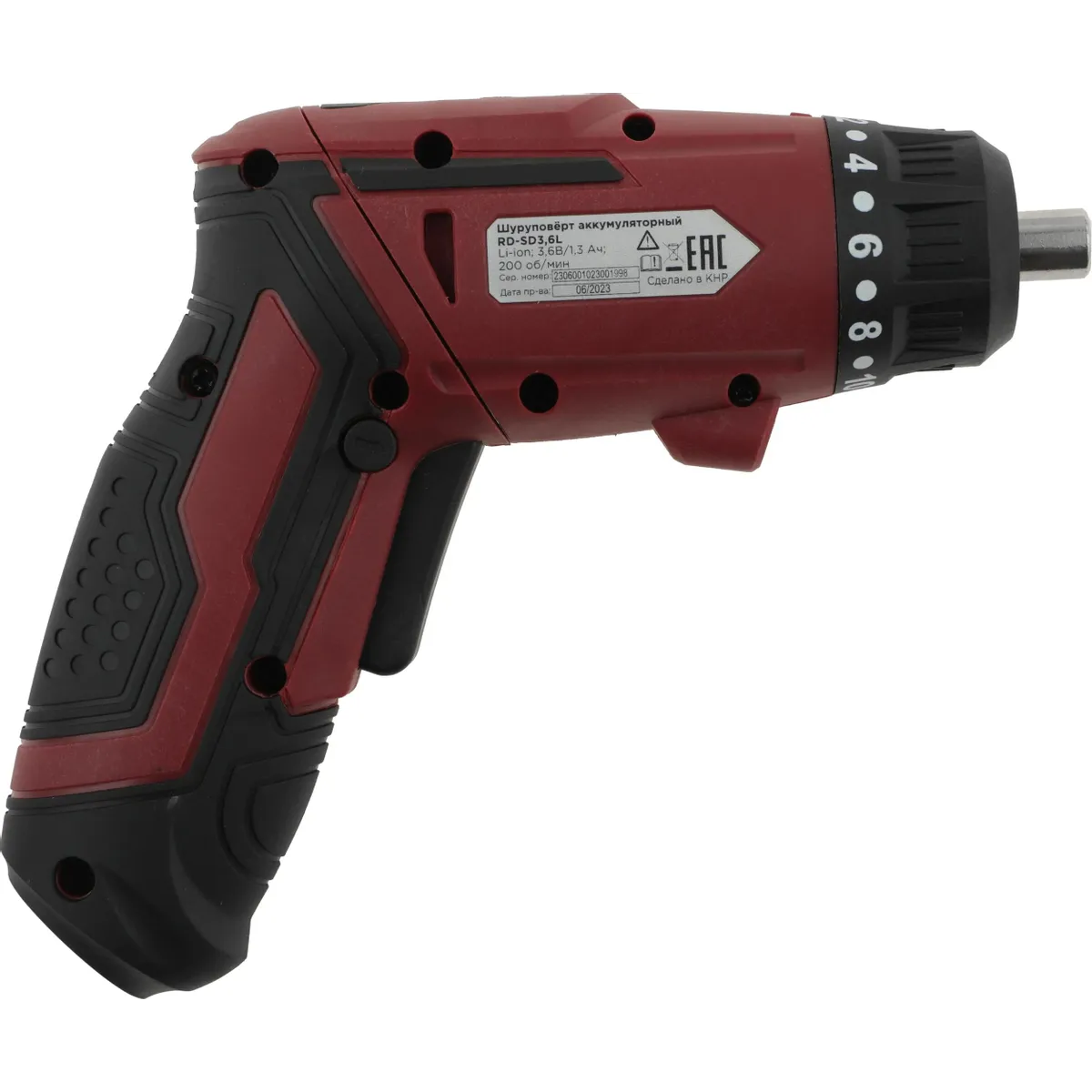 - REDVERG RD-SD3,6L 6622311 имеет 6 режимов регулировки крутящего момента и режим сверления