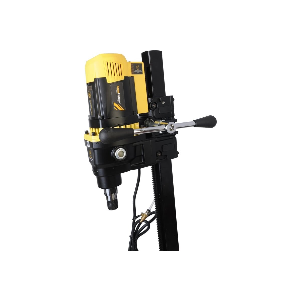 Станок алмазного сверления Hanskonner HBD395 — надежный и мощный электроинструмент для мокрого сверления алмазными коронками отверстий в таких материалах: бетон, железобетон, искусственный и натуральный камень, кирпич.