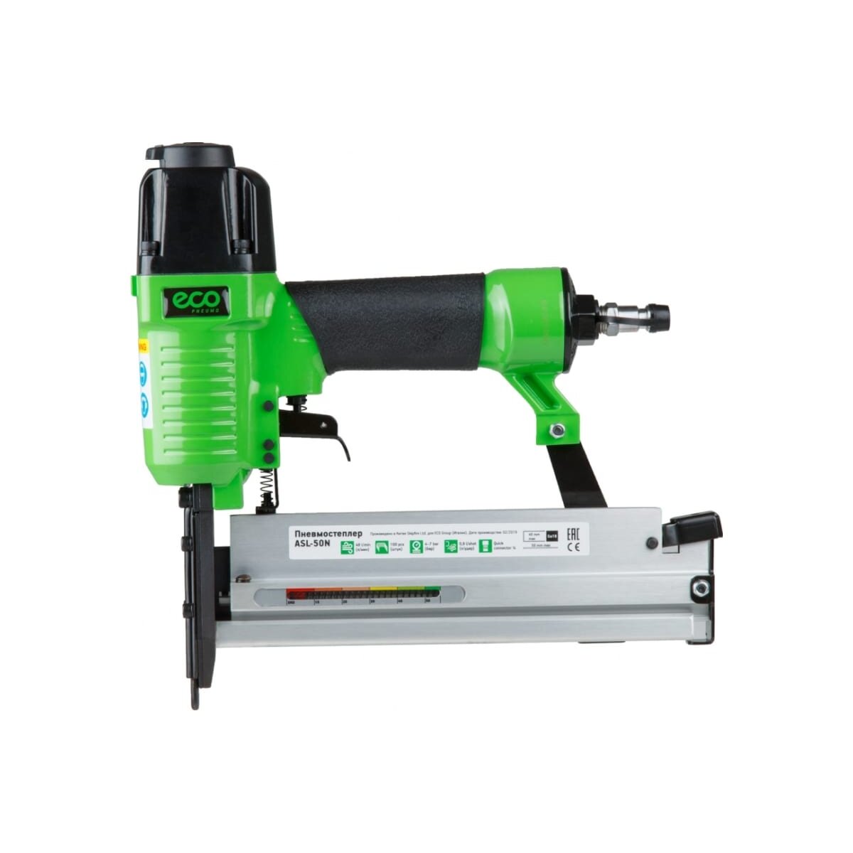Скобозабивной пневматический пистолет ECO ASL-50N используется при отделке помещений и строительных работах.