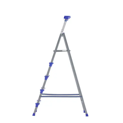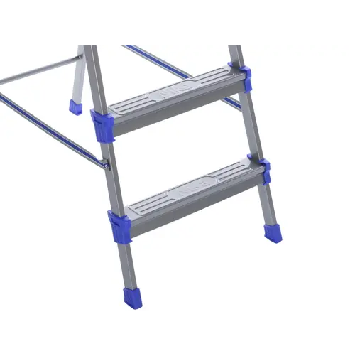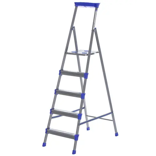 Стремянка имеет 5 ступеней, поэтому вы с легкостью сможете выбрать нужную вам рабочую высоту. Высота последней ступени значительна: она равна 107 см. Одним из преимуществ стремянки является наличие конструктивных элементов, препятствующих скольжению ног. Масса стремянки сравнительно невелика: она равна 6.7 кг.