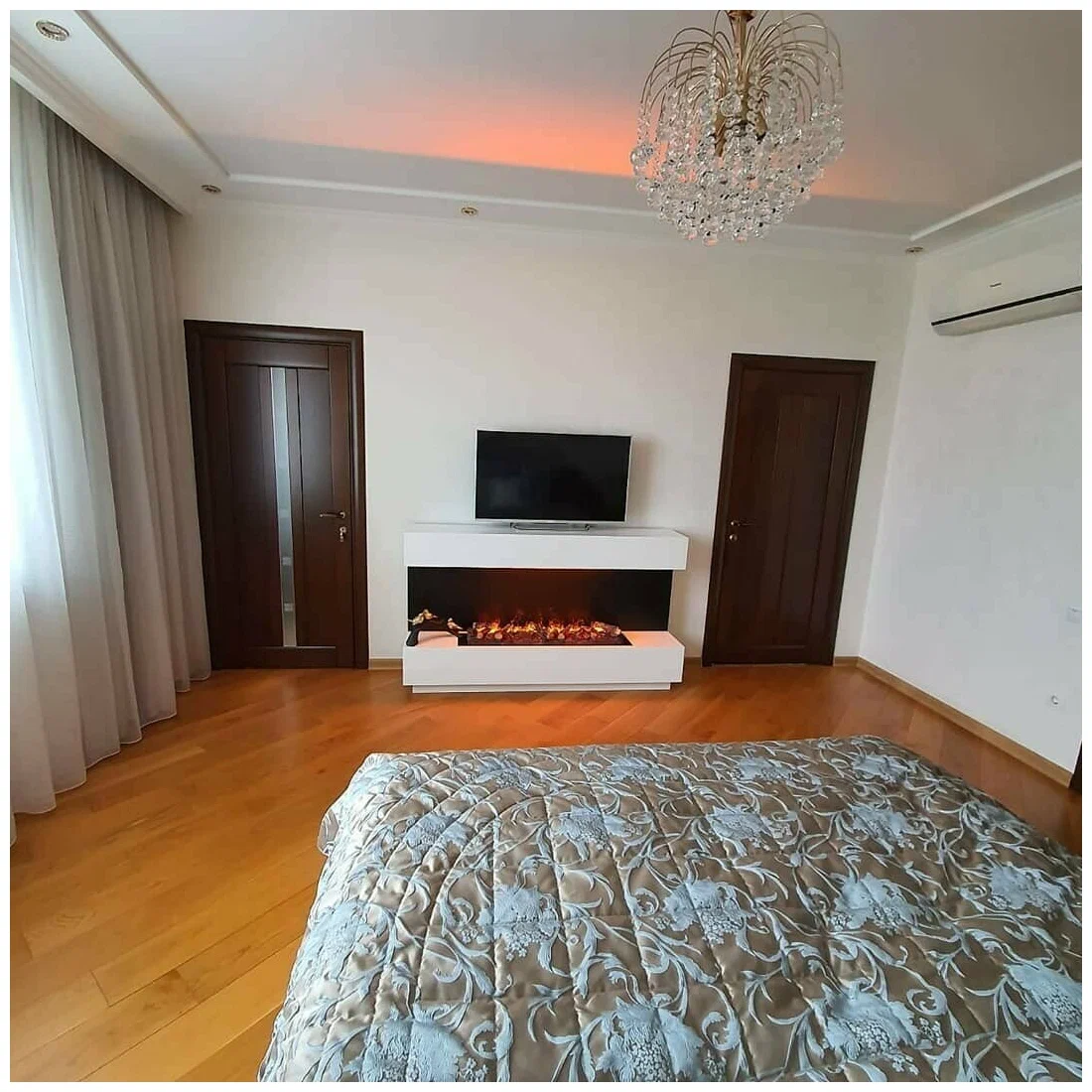 Сверхширокий линейный очаг с технологией пламени 3D. Эффект пламени достигается с помощью парогенератора и галогеновых ламп, что обеспечивает ощущение огня, не отличимого от настоящего.