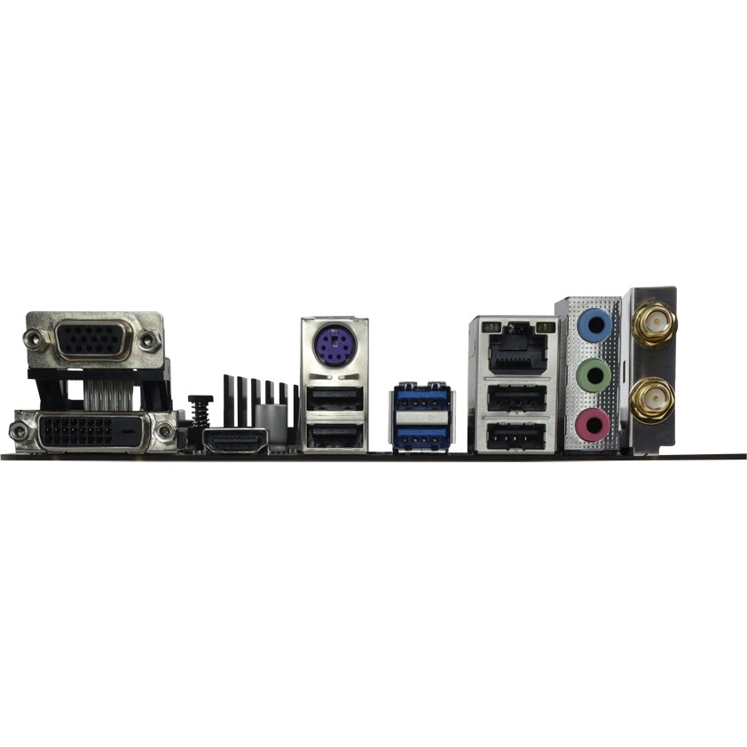 PS/2, 4 x USB 2.0, 2 x USB 3.2 Gen1, VGA, DVI, HDMI, RJ-45