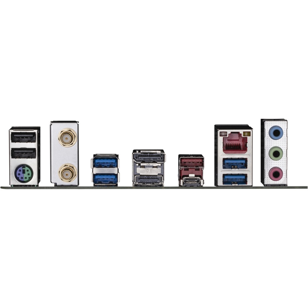 PS/2, 2 x USB 2.0, 4 x USB 3.2 Gen1, USB 3.2 Gen2, USB 3.2 Gen2 Type-C, HDMI, DisplayPort, RJ-45