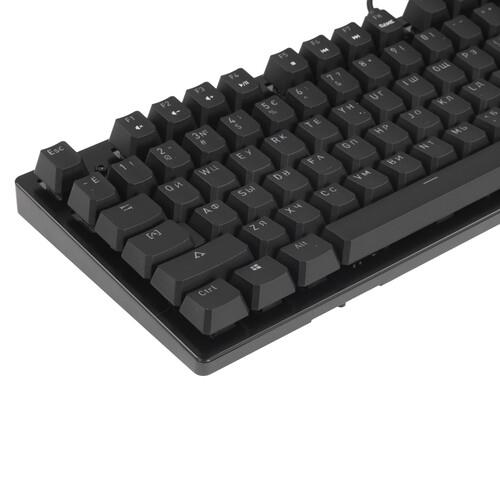 Основной цвет – черный. В комплекте поставляются сменные оранжевые клавиши. При необходимости можно легко выделить их на фоне других элементов. Демонтаж кнопок происходит при помощи пинцета, он присутствует в коробке. Производитель реализовал защиту от проливания жидкости. Попавшие на клавиатуру напитки не станут причиной поломки.