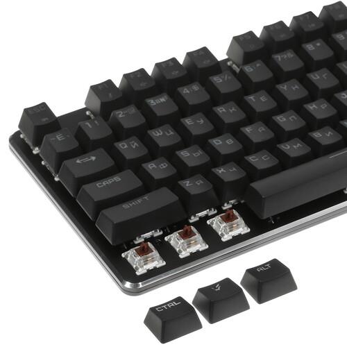 Клавиатура проводная ARDOR GAMING Blade заключена в металлический корпус черного цвета, который отличается устойчивостью к преждевременному появлению повреждений. Основа модели – тактильные переключатели Gateron Brown. Они продемонстрируют способность к мгновенному отклику на касания. Выполненным из PBT кейкапам не свойственно образование потертостей и утрата яркости оттенка.