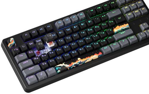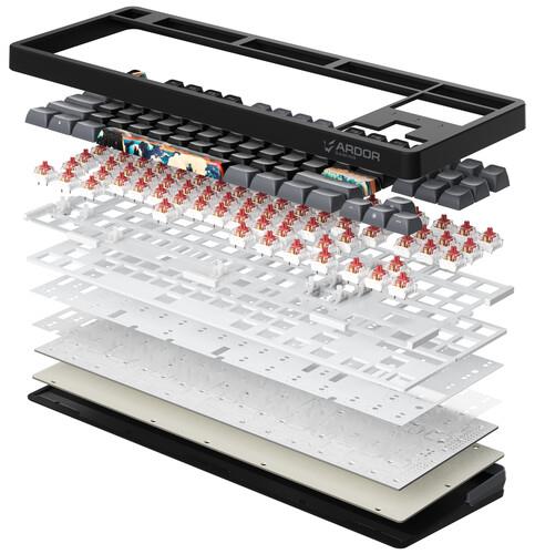 Игровая механическая клавиатура проводная ARDOR GAMING Otohime оснащена RGB подсветкой клавиш. В модели реализована функция быстрой замены переключателей Hot Swap. Формат устройства – TKL (80%). Интерфейс подключения клавиатуры – USB Type-A.