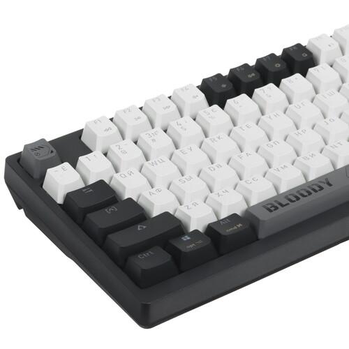 Клавиатура проводная + беспроводная A4Tech Bloody WS98 имеет кейкапы из пластика усиленной жесткости, устойчивого к потере яркости символов. Линейные переключатели Bloody BLMS RED уменьшают нагрузку на пальцы и отличаются плавным ходом. Обработать числовые данные можно с помощью цифрового блока.