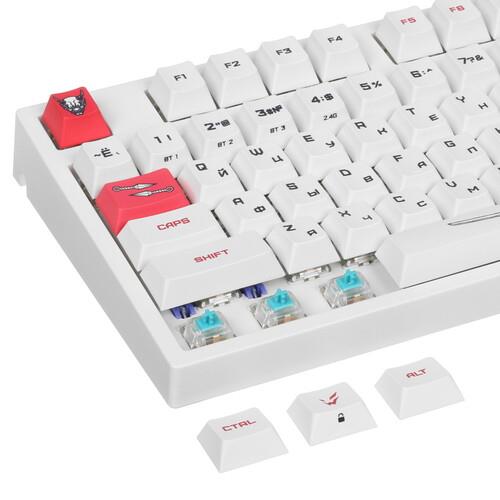Клавиатура ARDOR GAMING Katana [AG-ZD-104GT-HS-W] помогает сосредоточиться на игре. Модель выделяется оригинальным оформлением в самурайской тематике и белым корпусом. Механические переключатели Gateron Mint 2 мм отличаются укороченным ходом срабатывания и ресурсом 80 млн нажатий. Подсветка RGB повышает удобство в темноте. Стабилизаторы обеспечивают плавное и легкое срабатывание без лишнего резонанса. Поворотный переключатель позволяет регулировать громкость звука.