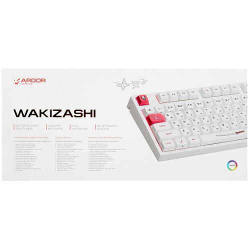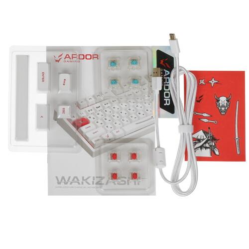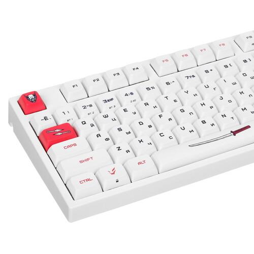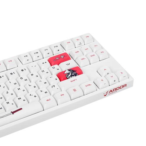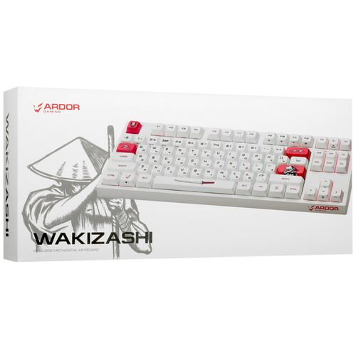 Клавиатура ARDOR GAMING Wakizashi [AG-ZD-87GT-XDA-HS-W] выделяется оригинальным оформлением. Она выполнена в корпусе белого цвета с красными накладками и рисунками на самурайскую тематику. Клавиатура оборудована 87 клавишами с механическими линейными переключателями Gateron Mint. Смазанные стабилизаторы и укороченный ход 2 мм обеспечивают точное срабатывание с плавным нажатием без лишнего шума.