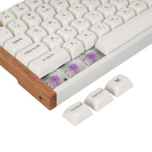 Клавиатура Keychron K2H-Q1-RU [K2H-Q1-RU] в корпусе из алюминия и дерева отличается компактными размерами благодаря отсутствию цифрового блока. Конфигурация включает программируемые клавиши, которые настраиваются под игровые опции. Интегрированная RGB-подсветка предупреждает ошибки ввода при недостаточном внешнем освещении. Автономная работа аксессуара осуществляется от аккумулятора.