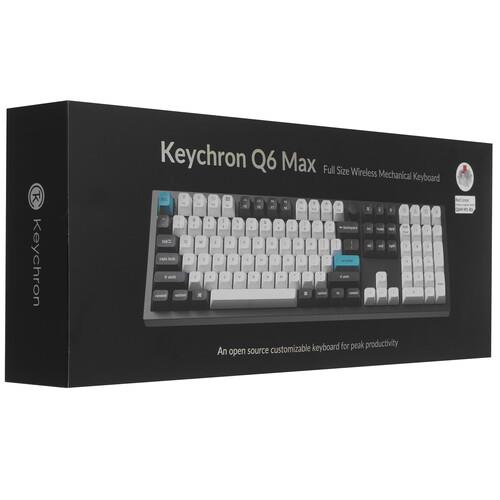 Металлическая кастомная клавиатура Keychron Q6 Max [Q6M-M1] в классической 100% раскладке с поддержкой QMK/VIA и беспроводным подключением 2,4 ГГц, идеальна для игр и повседневного использования. Корпус выполнен из фрезерованного алюминиевого сплава, верх и низ которого соединены при помощи двойного gasket mount, обеспечивающего подвижность всей конструкции при печати.