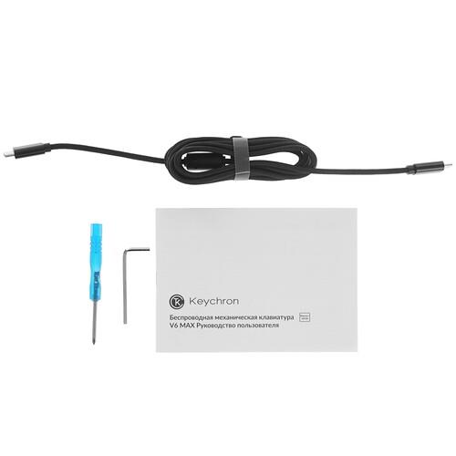 Клавиатура проводная Keychron V6 Max может похвастаться интегрированной RGB-подсветкой. Она не допустит ошибок при введении данных или прохождении насыщенного сражения в условиях слабого освещения. Корпус выполнен на основе пластика устойчивого к преждевременному появлению повреждений. Синхронизировать аксессуар с ПК или ноутбуком поможет подключение через 2,4 ГГц, USB Type C и по Bluetooth.