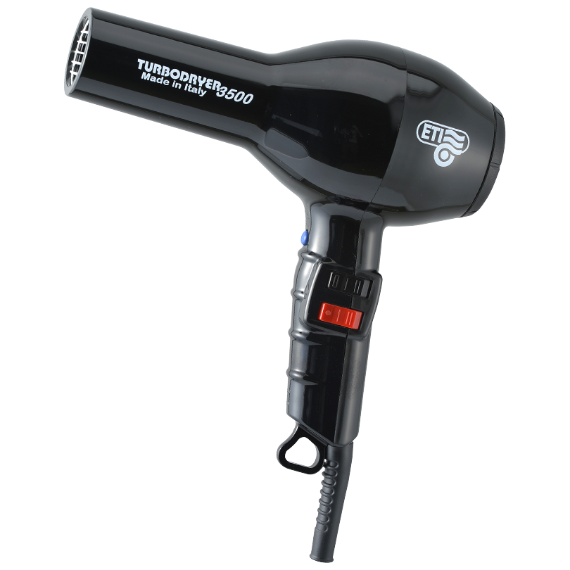 Профессиональный фен ETI Turbodryer 3500 для мастеров своего дела. Создан для ежедневной работы в условиях салона. Современный мощный мотор переменного тока с ресурсом 2500 часов работы не перегревается. Равномерно нагревает воздух и быстро переключается между температурами. Стильный фен для укладки отличается от других не только основными характеристиками, но и продуманным дизайном. Обдув воздуха равномерно распределяется по всей длине. Ручка комфортно ложится в руку. Положение кнопок позволяет удобно переключаться между 4 температурными режимами и двумя скоростями. Вес фена 595 грамм совершенно не ощущаются в руке, благодаря оптимальному распределению веса. Решетка воздухозаборника легко снимается и очищается. Длина провода 3 метра позволяет свободно перемещаться вокруг рабочего пространства. Мощность 2000 Вт. Мотор: АС. Скорость воздушного потока: 83 м куб/час. Шум: 70 дБ. Режим холодного обдува: есть. Керамическая решётка. Две насадки в комплекте. Сделано в Италии.