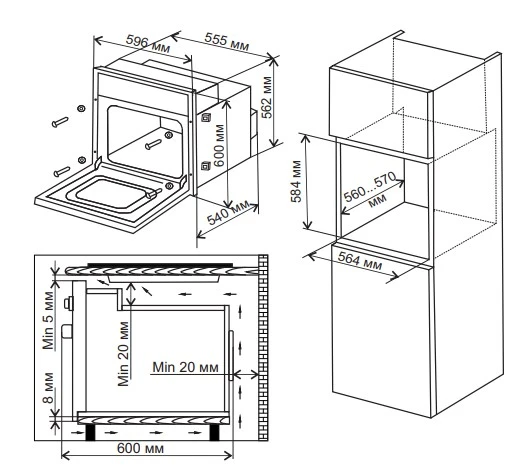 • Ширина встраивания: 55.5 см