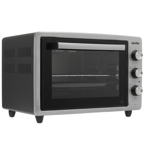 Мини-печь Simfer M3426 с внутренним объемом 34 л отличается компактностью и простотой управления. Она оснащена двумя нагревательными элементами (сверху и снизу) и тремя режимами работы. Таймер обратного отсчета на 90 минут помогает контролировать оставшееся время, оповещает о его завершении звуковым сигналом и автоматически отключает печь. Управление осуществляется с помощью поворотных переключателей. Ручка на дверце защищена от нагрева до высокой температуры. В комплекте с печью Simfer M3426 поставляются прямоугольный противень, круглый противень и решетка.