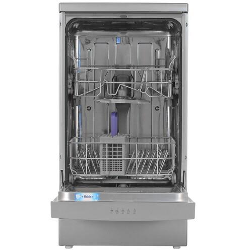 Техника Beko BDFS15020S оснащена двумя корзинами для посуды, отдельным лотком для столовых приборов и удобными полочками для чашек. Вы можете использовать средства «3 в 1», активировать режим быстрой мойки или половинной загрузки. Техника выполняет конденсационную сушку, ускорить которую поможет приоткрытая дверца.