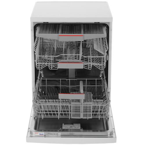 Bosch SMS46NW01B выполнена в классическом **белом цвете**. Она гармонично впишется в любой интерьер. Панель управления – открытая, с удобными кнопками и информативным дисплеем.