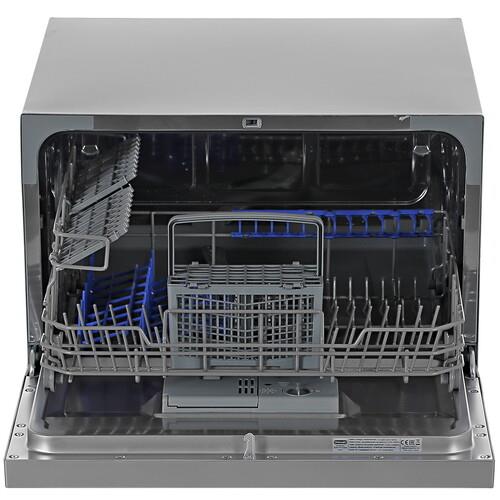 Посудомоечная машина Delonghi DDW07T Fridere выполнена в компактном серебристом корпусе размерами 43.8x55x55 см. Такие размеры устройства допускают монтаж под столешницей. Благодаря частичной защите от протечек, реализованной через корпус, аппарат обеспечивает безопасную эксплуатацию. Прибор позволяет выбрать оптимальную программу из 7 возможных: автоматическую, стандартную, экономичную, деликатную программу, интенсивной мойки и экспресс-программу.
