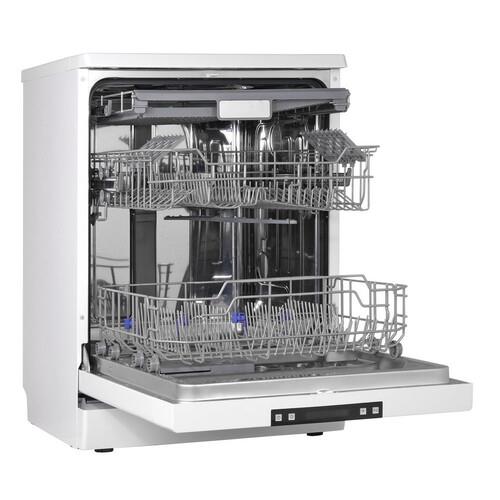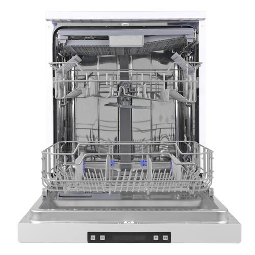 Эта **полноразмерная**, отдельностоящая модель. Она оснащена электронным управлением. Внутри три корзины. Вместимость – до 14 комплектов посуды.