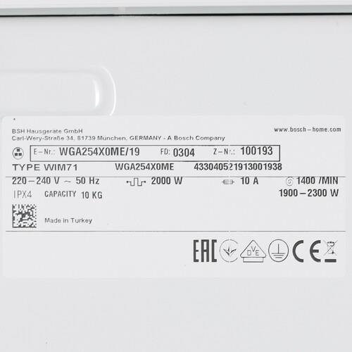 Стиральная машина Bosch WGA254X0ME оснащена режимом отложенного старта. Он запускает работу модели в обозначенный пользователем временной интервал. Загрузить забытые вещи хозяйки могут прямо во время цикла. Технология диагностики анализирует состояние устройства и уведомляет о неполадках. Поворотный механизм и сенсорные переключатели открывают доступ к настройкам. Дисплей информирует о выбранных параметрах. Антиаллергенная программа тщательно прополаскивает каждую вещь, устраняя остатки моющих средств.