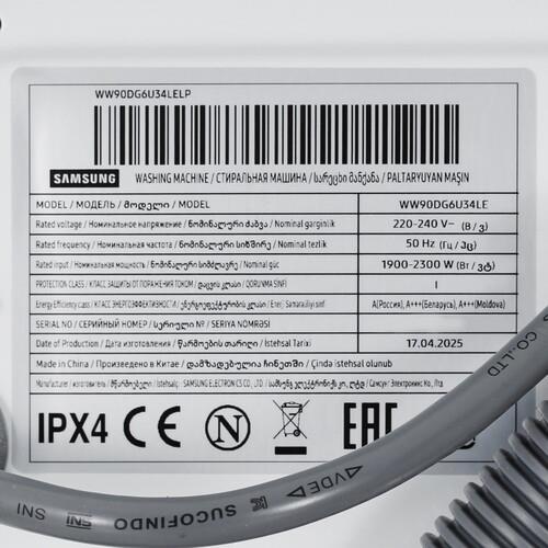Стиральная машина Samsung WW90DG6U34LELP оснащена 23-мя программами стирки, поддержкой изменения температуры нагрева воды и скорости отжима. Есть функции интенсивного замачивания, предварительной и пузырьковой стирки, отсрочки запуска до 24 ч. Вы можете заблокировать панель управления для защиты от детей. Технология автовзвешивания регулирует количество используемой воды и время цикла в зависимости от количества белья. Стиральной машиной можно управлять через мобильное приложение SmartThings.