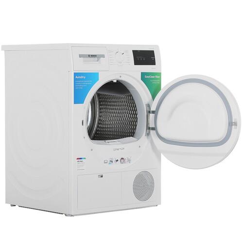 Сушильная машина Bosch WTH830L5SN с загрузкой на 7 кг оборудована барабаном из алюмоцинка, устойчивого к появлению коррозийного налета. Фильтр задерживает ворс, пыль, волосы. Система антисминания не допускает появления складок. Предусмотрена возможность сушки вещей из деликатных тканей при пониженной температуре.