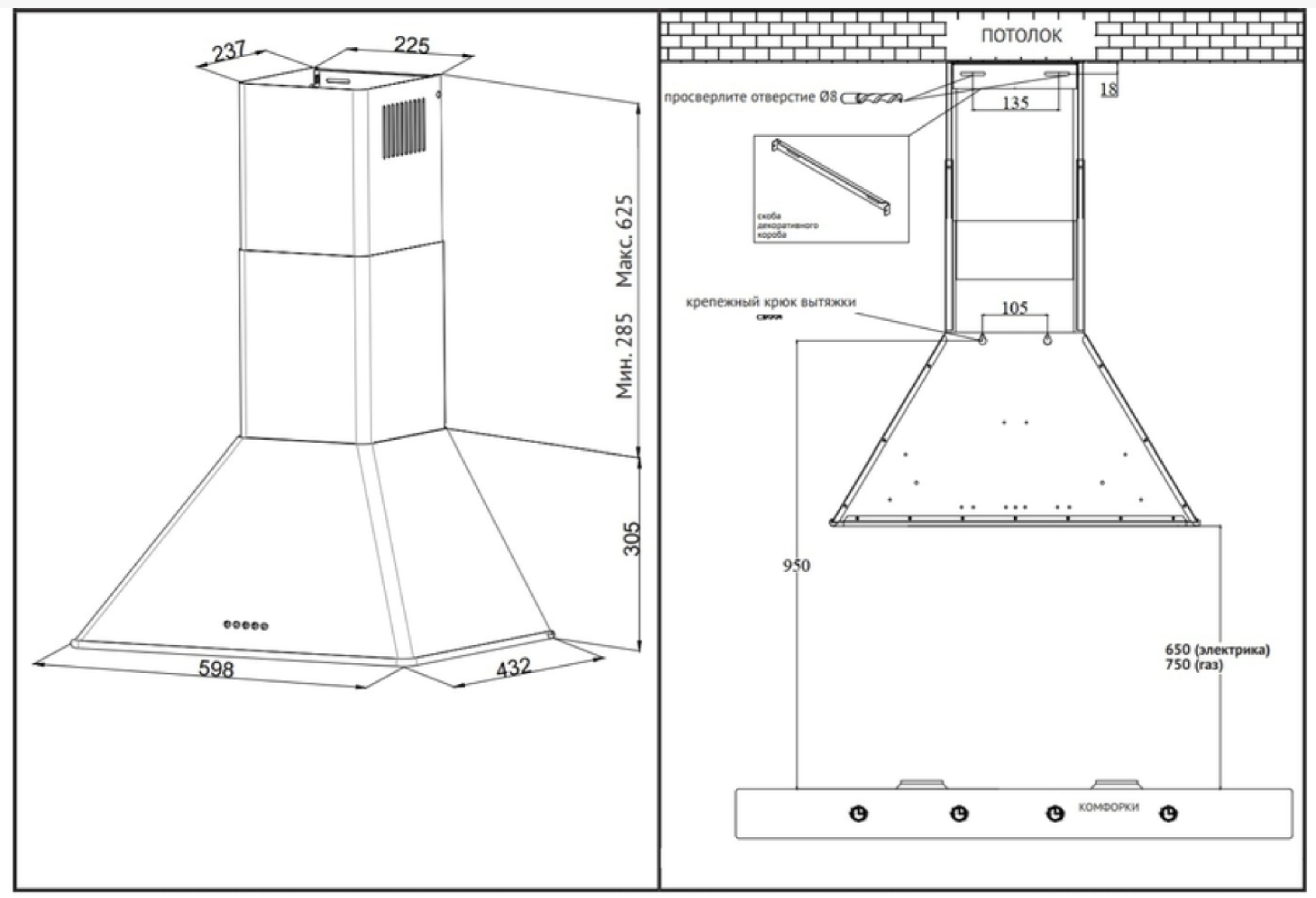 —Кухонная вытяжка Korting KHC 6648 RB