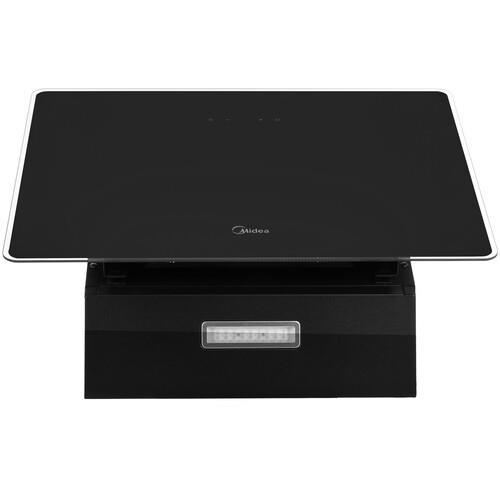 При подключении вытяжки Midea MH60AN364GB к вентиляционному отверстию она будет работать в режиме «Отвод». Загрязненный воздух будет выходить через гофрированную трубу. Если отверстия вентиляции нет, можно пользоваться прибором в режиме «Циркуляция». Для этого на входе устанавливается угольный фильтр. Воздух, загрязненный парами и запахами, проходит через него, очищается и выходит обратно в помещение. Для удобства управления используется сенсорная панель с дисплеем.