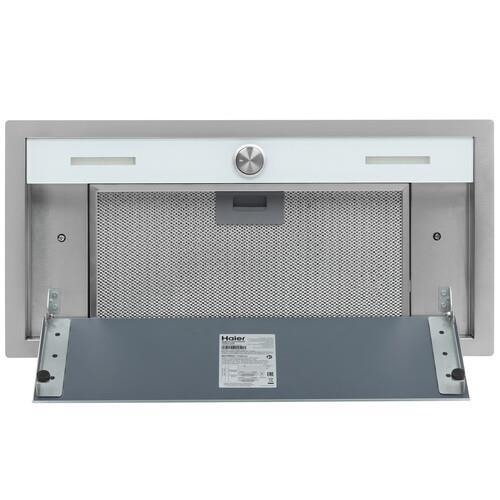 Вытяжка Haier HVX-BI664GW предназначена для полного встраивания в кухонный шкаф. Рамка внешней части вытяжки изготовлена из нержавеющей стали и практически не выступает из кухонной панели, а жировой фильтр закрыт стеклянной панелью, вокруг которой происходит всасывание воздуха. Такую панель легко мыть, а периметрическое всасывание считается более эффективным. Для удобства управления предусмотрен утапливаемый регулятор выбора режима работы. Модель имеет хорошие характеристики производительности, до 560 м³ воздуха в час, и может эффективно удалять загрязненный воздух, как в режиме воздухоотвода, так и в режиме рециркуляции при условии установки дополнительного угольного фильтра. Яркое светодиодное освещение обеспечит комфорт и удобство при приготовлении блюд на плите.