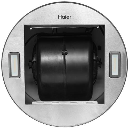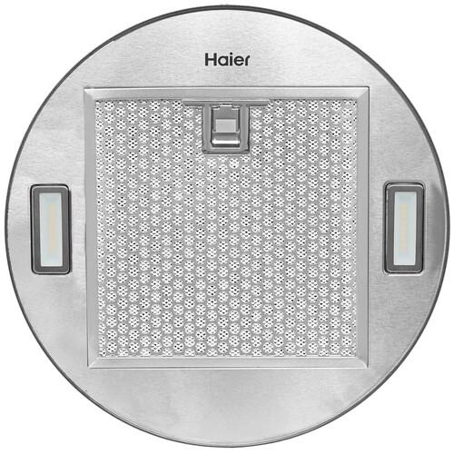 В нижней части металлического цилиндрического корпуса расположен съемный фильтр, который задерживает жировые брызги. Его можно мыть в посудомоечной машине или под проточной водой. С помощью таймера позволяется устанавливать определенное время работы вытяжки. Благодаря антивозвратному клапану воздух снаружи помещения не поступает обратно через вентиляционное отверстие. Для яркого освещения зоны приготовления в Haier HVX-W481LX предусмотрена светодиодная подсветка с двумя энергоэффективными лампами.