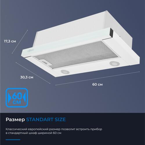 Два мощных мотора с лёгкостью очистят воздух в помещении до 20 м². Расположенная фронтально панель управления исключает дискомфорт в использовании. Классический европейский размер позволит встроить прибор в стандартный шкаф шириной 60 см. Две мощные светодиодные лампы по 2 Вт позволят полноценно осветить рабочую поверхность. Прибор может работать в режимах отвода и рециркуляции, благодаря дополнительной установке угольного фильтра ZKF1.