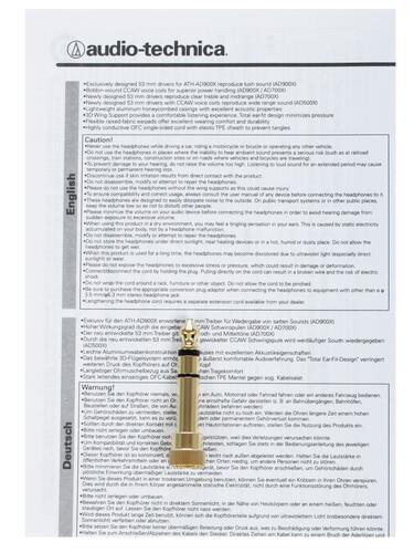 Прибор Audio-Technica ATH-AD500X оснащен длинным 3-метровым кабелем с прямым позолоченным штекером, защищенным от окисления. Кабель легко отсоединяется от устройства, что способствует легкой замене аксессуара при его поломке. Устройство воспроизводит звуки при частоте 5-25000 Гц и обладает чувствительностью 100 дБ.