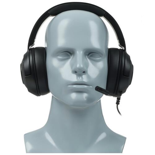 Наушники Razer Kraken X Lite фиксируются на мягкое регулируемое оголовье. Их положение можно отрегулировать так, чтобы не ощущать дискомфорта при длительном нахождении в них. Мягкая прокладка на внутренней стороне оголовья снижает давление на голову, снимая напряжение. Гарнитура содержит на корпусе гибкий микрофон с подвижным креплением. Его можно отодвинуть, когда он не нужен. Микрофон передает четко голос, заглушая сбоку и сзади фоновые шумы. Это обусловлено использованием микрофоном кардиоидной диаграммы, фокусирующейся у рта.