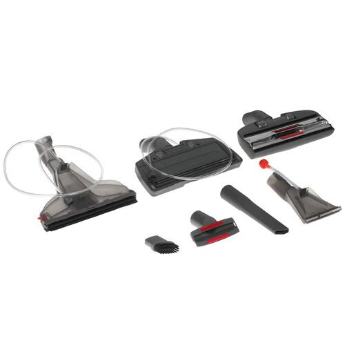 Вода заливается в бак с емкостью 1.8 л. Его объема достаточно для полноценного использования пылесоса. Вместе с данной моделью поставляется комплект насадок, они будут полезны во время уборки.