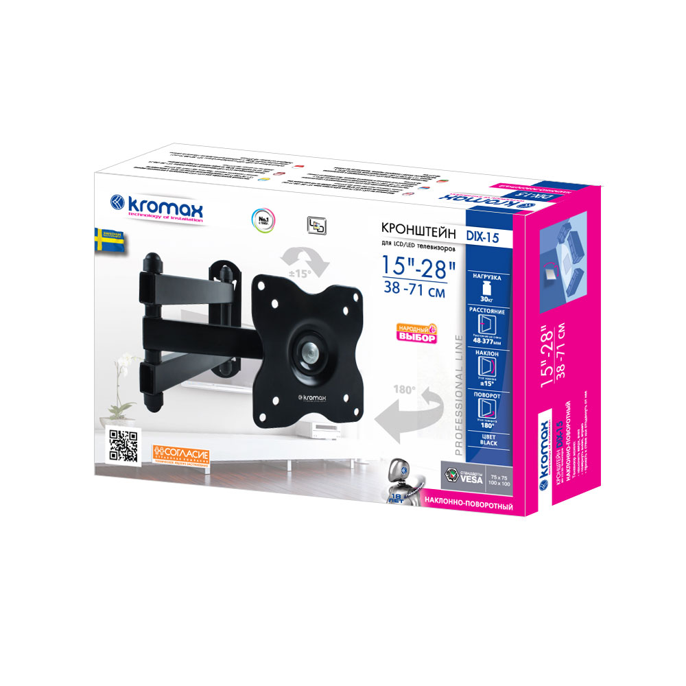 Максимальный вес телевизора: 30 кг