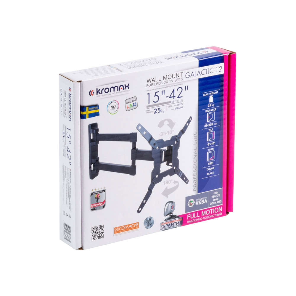 Дополнительная информация: угол наклона +3 -10°, угол поворота 180°