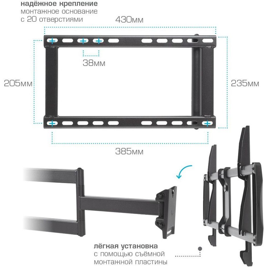 Максимальный вес телевизора: 45 кг