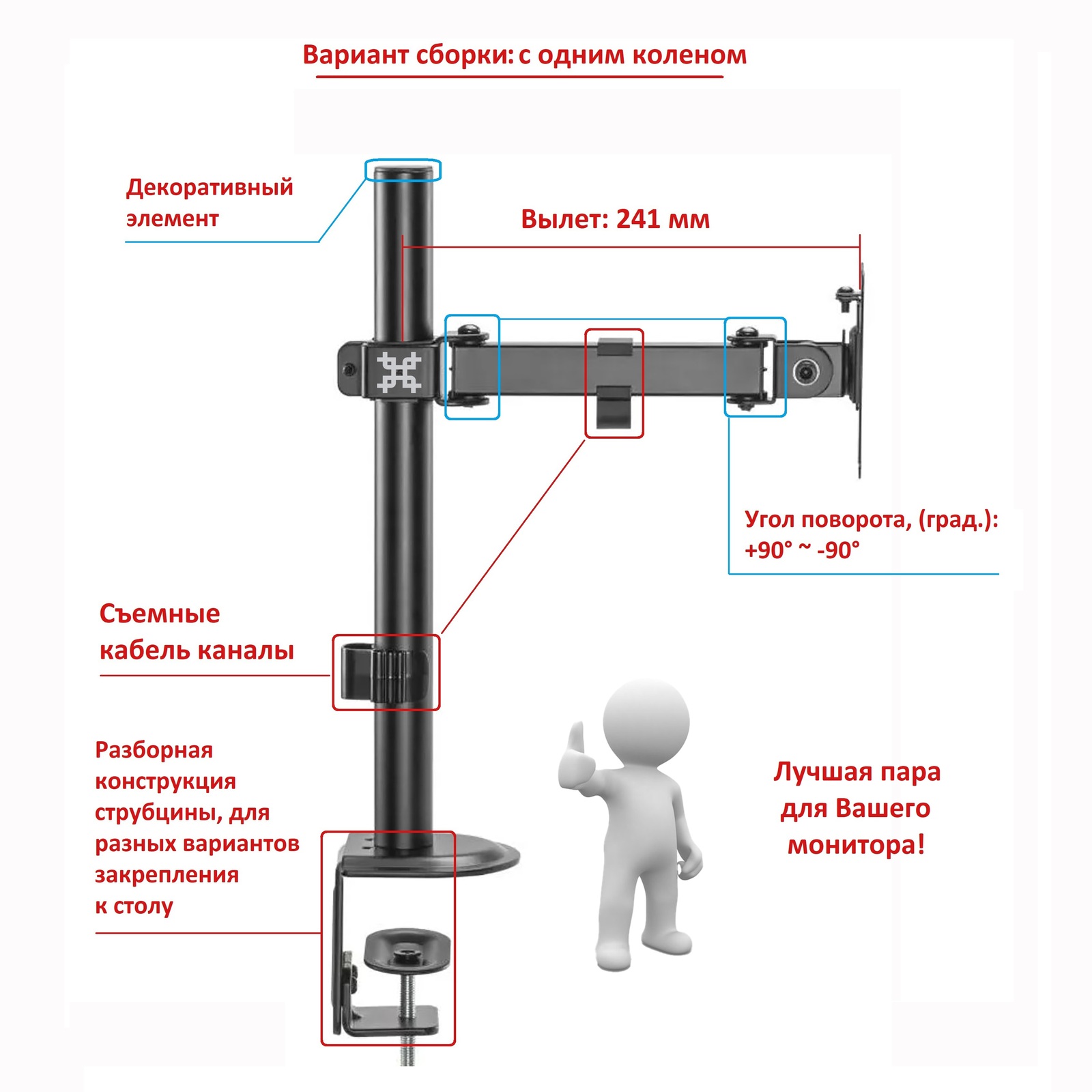 Тип кронштейна: Настольный со струбциной для монитора