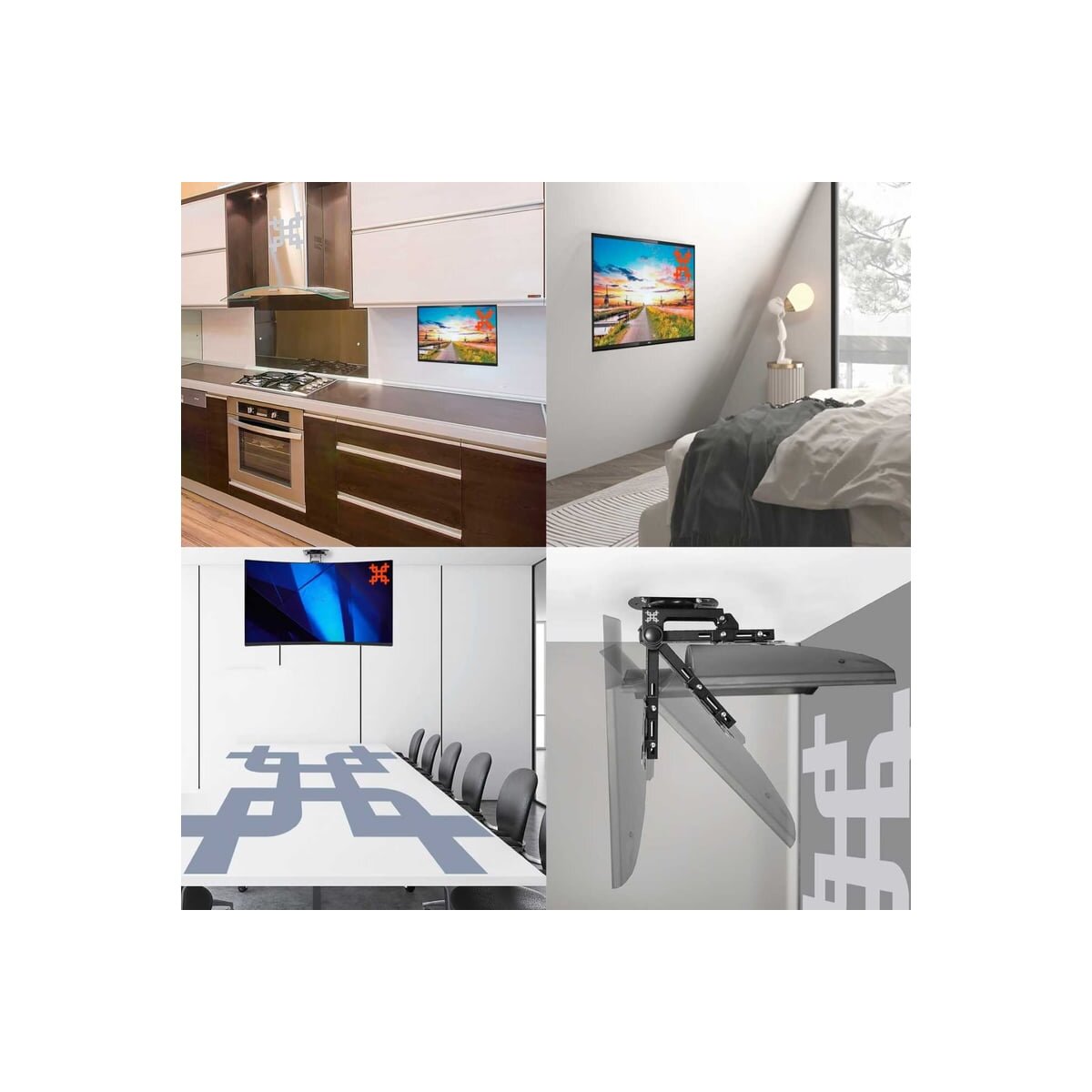 Крепкий и прочный, при этом элегантный кронштейн станет прекрасным дополнением любого интерьера, не в зависимости от того, где Вы разместите кронштейн: на кухне или офисе под полкой, на потолок в любом помещении, под мансардой и т.д..