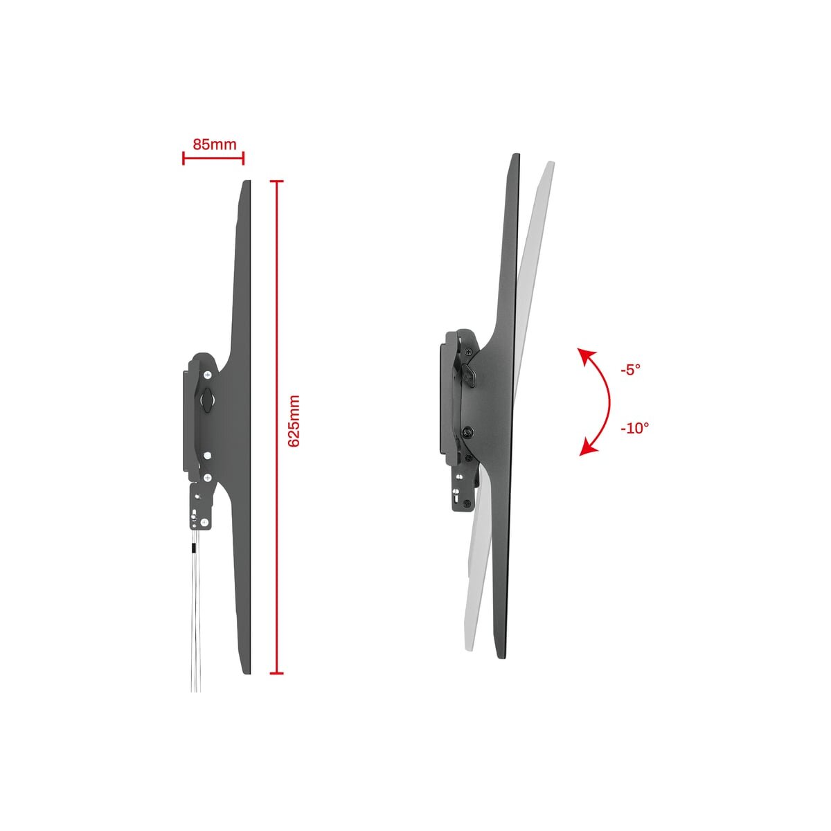 Вы можете занимать любое удобное положение при просмотре ТВ за счет широких возможностей регулировки угла наклона от +5° до -10°.