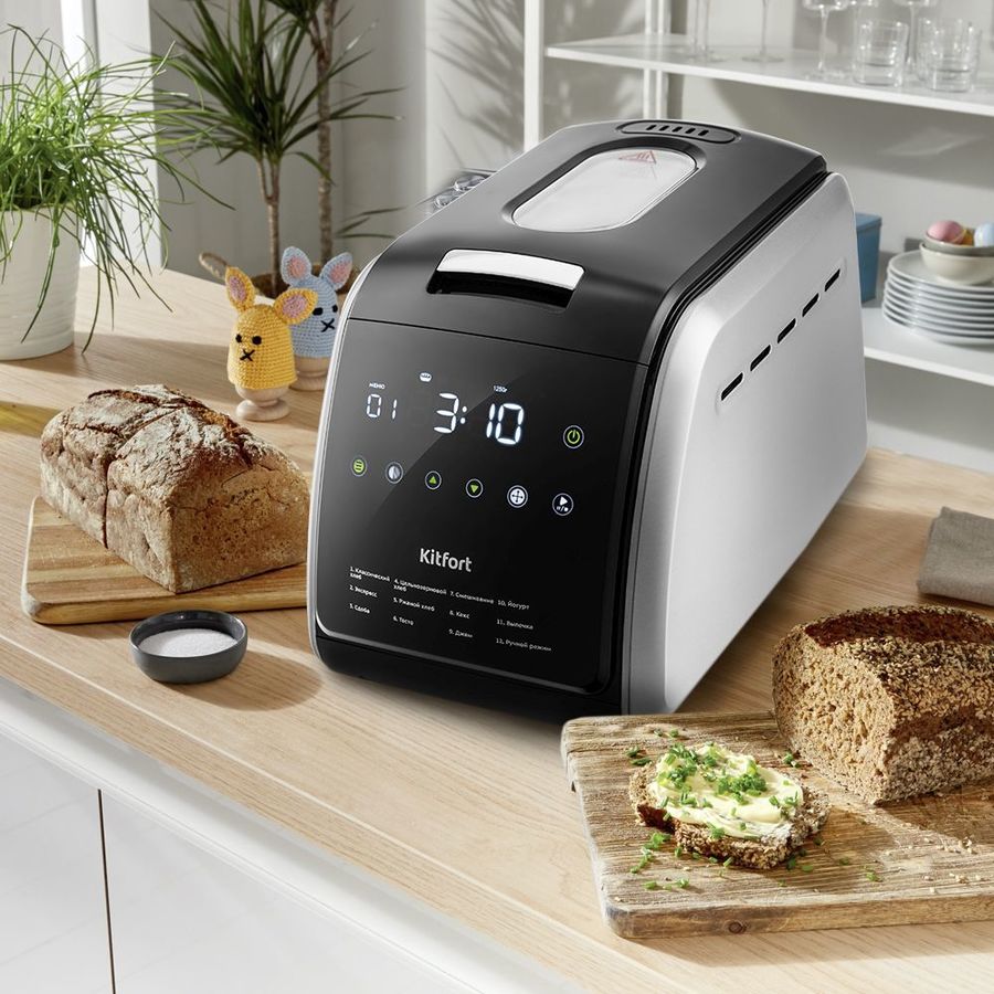 Программы выпечки: классический хлеб, экспресс, сдоба, цельнозерновой хлеб, ржаной хлеб, тесто, смешивание, кекс, джем, йогурт, выпечка, ручной режим