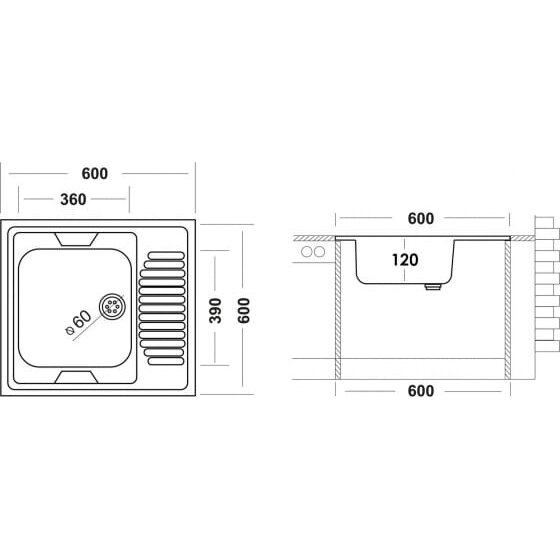 Мойка Ukinox ECO 600.600 R российского производства, изготовлена из нержавеющей стали AISI 430 толщиной 0,4 мм. Чаша справа.
